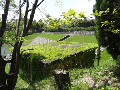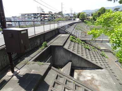 トンネルで下堤を抜けた洪水吐水路はこんな風に顔を出しています。