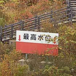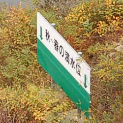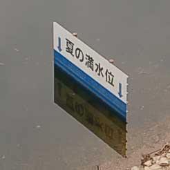 貯水池の最高水位を示す看板です。