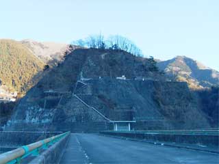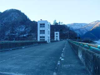 やっと到着、天端中央。 堤体の真下には発電施設。 非越流堤体ならではです。