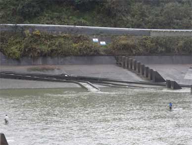資料館の屋上から見た現在の第二床固です。