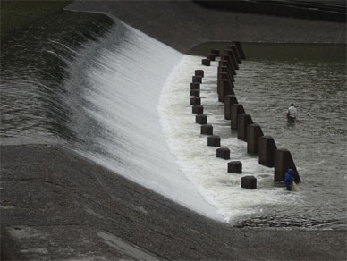 川幅が狭く、水が分水路内のどこよりも厚みを増して通過するわけで