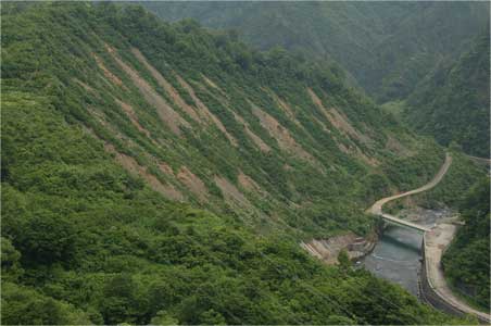 下の管理道路や川に崩れた痕跡と片付けられた痕跡があります。