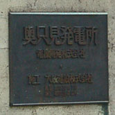 出入口の横に発電所のプレート。