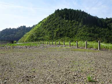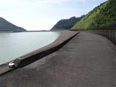 貯水池は池の縁から大型車両が通行できるくらいの幅をあけて