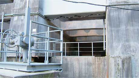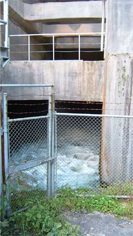 天端から見たときはお水がたくさん流れていたゲート部。