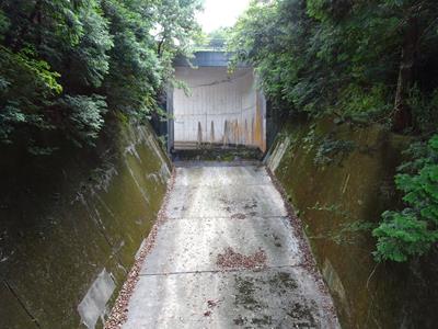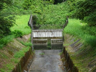 橋から見た洪水吐水路です。