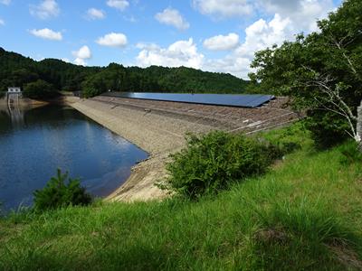 堤体の天端付近にはなんと太陽光パネル。