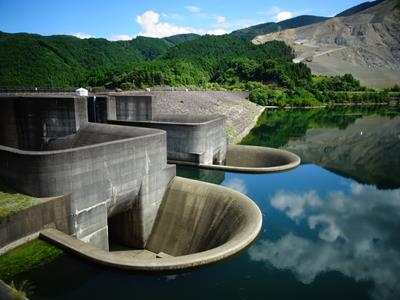 青空の下の堤体です。