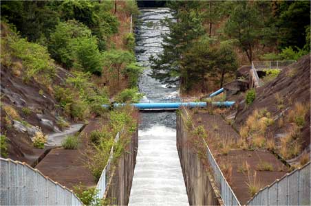 写真では伝わりにくいですが、かな〜り巨大な余水吐です。