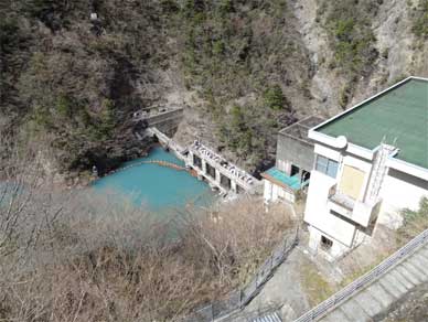 とりあえずじりじりと下りながら堤体周辺をズームで愛でる。
