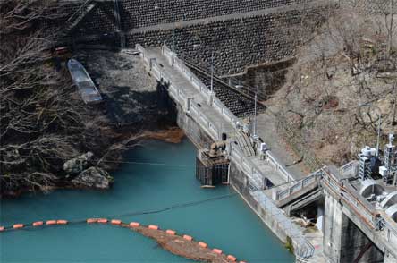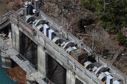 ゲートピアをつないだ管理通路を増設してあるのでこの角度から扉体は見えません。