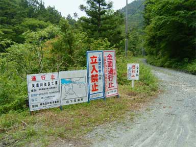 全面通行止めの看板が出ている分岐。