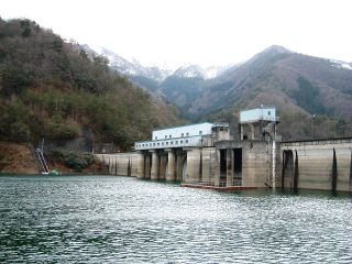 雪を頂く山の下、43年物のコンクリートといっぱいのお水。
