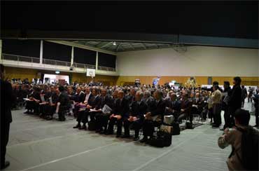 式典が行われる講堂にはすでに人がいっぱいです。