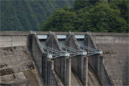 奥只見ダムのような越流型ラジアルゲートではありません。