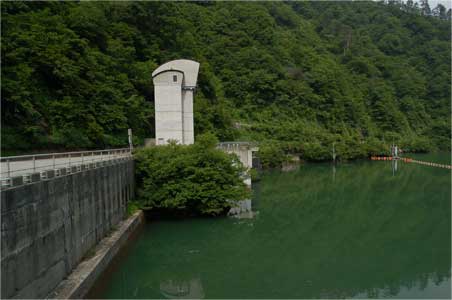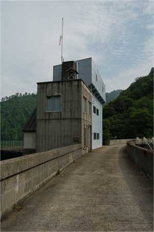鷲ダムと違うところは天端に取水設備用の管理棟があるところですね。