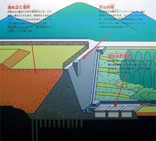 通常の貯水ダムと堤体の勾配が逆であることがお分かり頂けると思います。