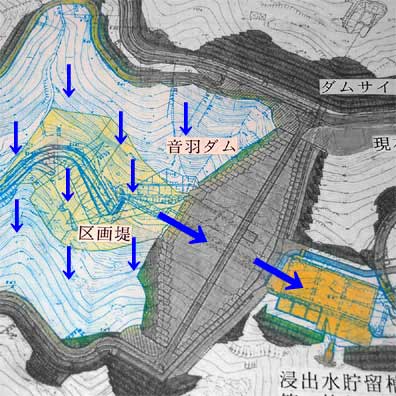 ダム湖に当たる部分にこのように埋め立てが進んでいるんですが