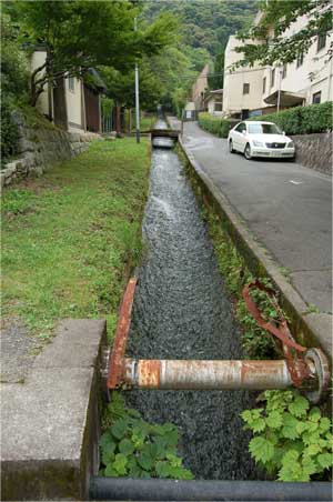学校の間を流れる水路。