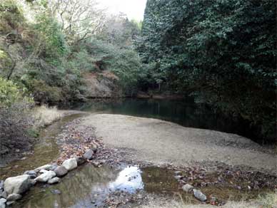 谷を埋めた土砂の端っこの方なんですが池の様になっているところがありました。