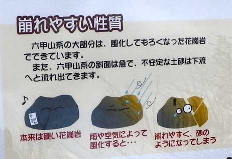 六甲山は観光名所でもありますが古い花崗岩質で実に崩れやすい山でもあること。