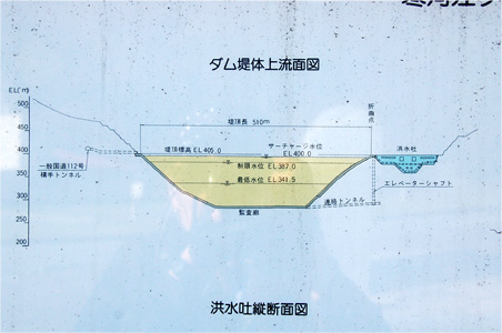 最上川ダム統合管理事務所の寒河江ダムのページで計画図を見てわかりました。