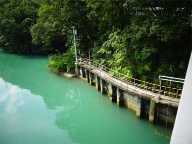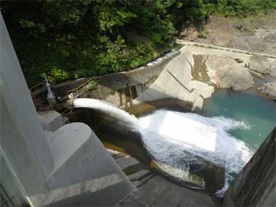 堤体の左岸で元気よく河川維持流量を補給してくれているのは