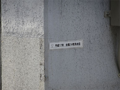 平成17年14号台風でここまで上がった水位を示してくれています。