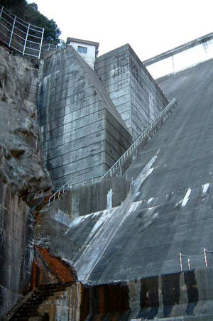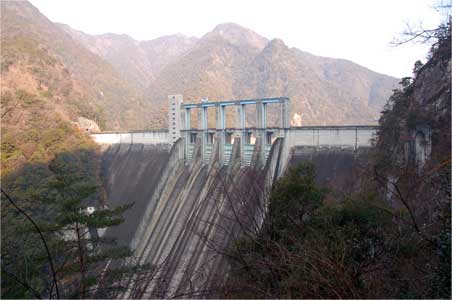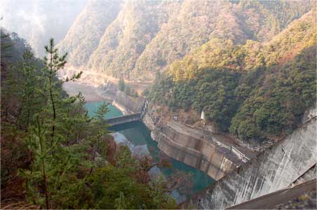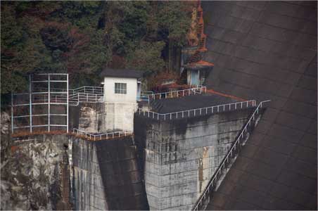 現在の水位では左岸の発電用の取水塔の上から5段目枠はまだ顔を出していないので