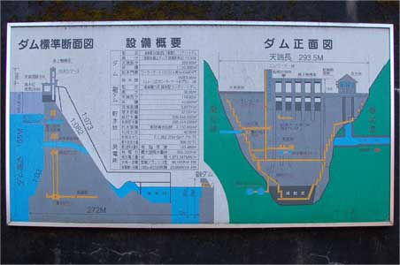 こちらの説明板には堤体内の監査廊がどう走っているか詳しく描かれています。