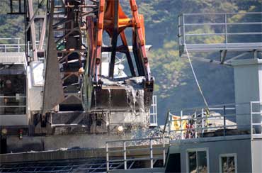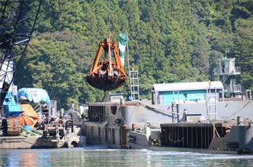 「バケットのサイズがグラブ浚渫船より大きくて5.0m3も掴めるんですよ」