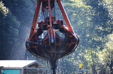 グラブ浚渫船のこの動き。