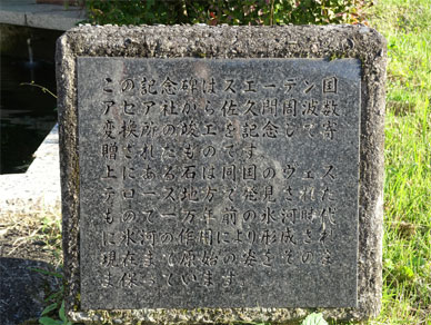「この記念碑はスェーデン国アセア社から佐久間周波数変換所の竣工を記念して寄贈された物です。