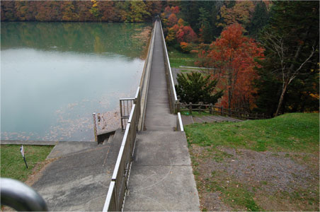 天端を真横から見下ろせる観測台に上がらせて頂きました。