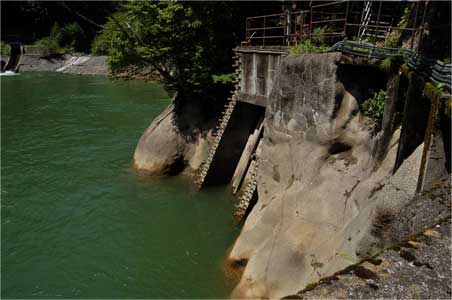 これが湯川発電所にお水を送っている取水口。