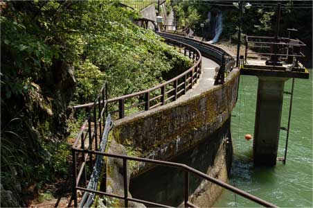 天端中央を過ぎて左岸へ。