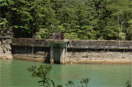 堤体の年を経たコンクリートと排砂ゲートのコンクリートの肌理の違いが凄くはっきりしていますね。