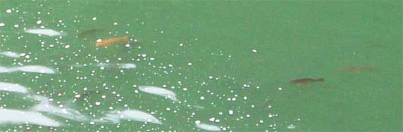 そして下流、天若湖側を見ると凄いたくさんの魚影です。