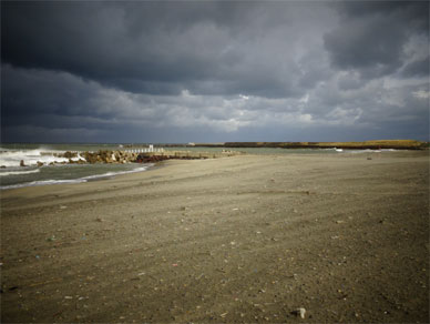 この地盤沈下に砂の供給低下が加わって新潟海岸は豊かな砂浜から