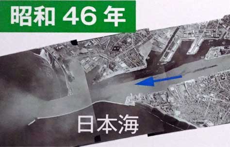 新潟港に砂をためないように沖合まで川の水が流れていくように