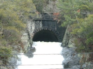 ここから堤体を見ようとしましたがとにかくもう凄い水飛沫で