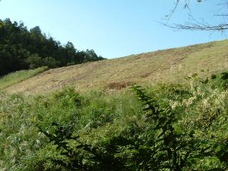 堤体の上に繁ったススキは刈り取られた直後でした。