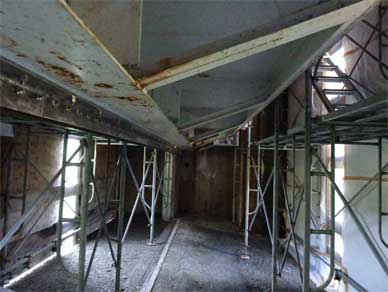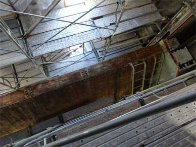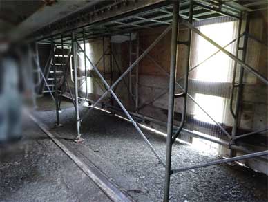 足場が組まれて塗装前の作業が始まる直前のローラーゲートの横にも