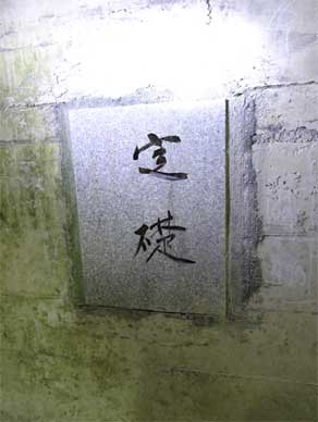 下段監査廊の壁にある定礎石。