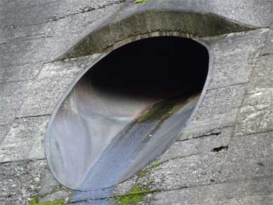 常用洪水吐の水が出てくるコンジットチューブの端もばっちり見えました。