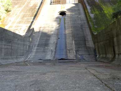 堤体直下はエプロンが伸びていてエプロンの両岸は