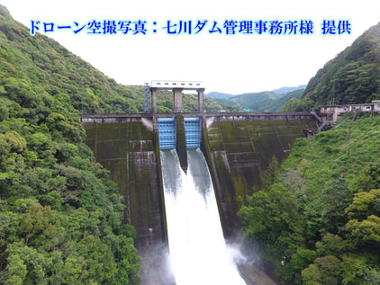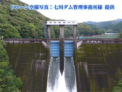 七川ダムのパンフレット写真と同じくエプロンが水没している写真なので