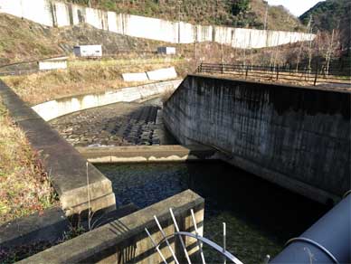 直下で川が蛇行しているのでエンドシルも斜めに設けられていました。