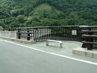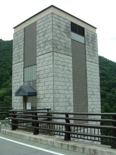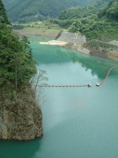 天端からダム湖側を見ると水位は夏季の制限水位らしく