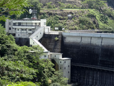 右岸にある管理所と管理所からキャットウォークに続く屋根付き通路。